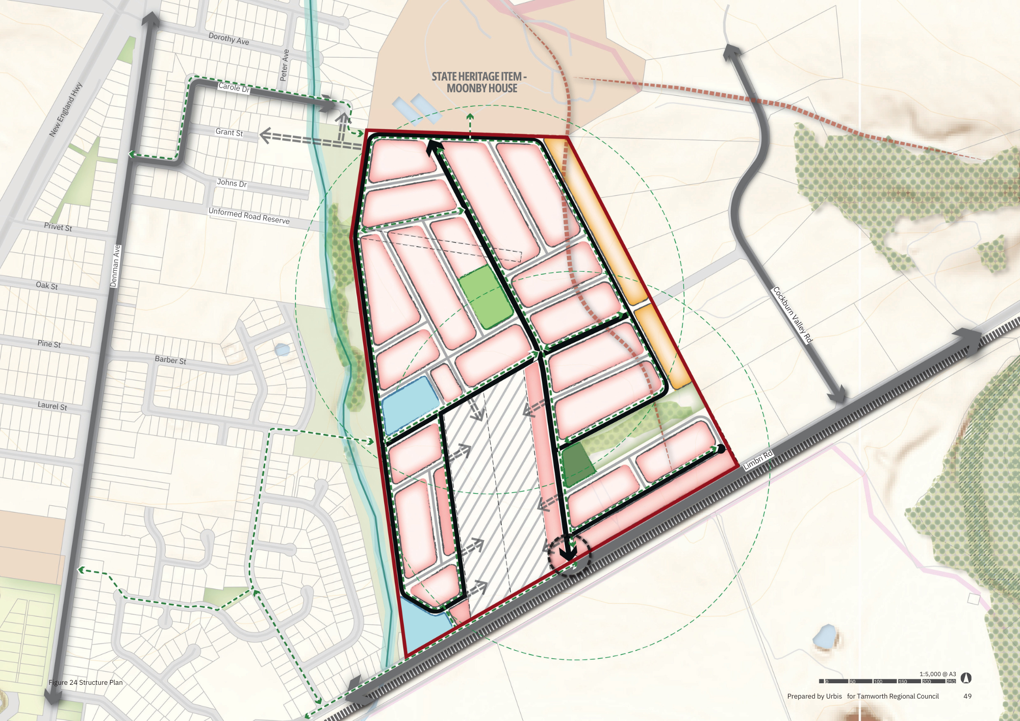 This precinct is located to the east of the existing Kootingal urban area and enjoys frontage to Limbri Road.